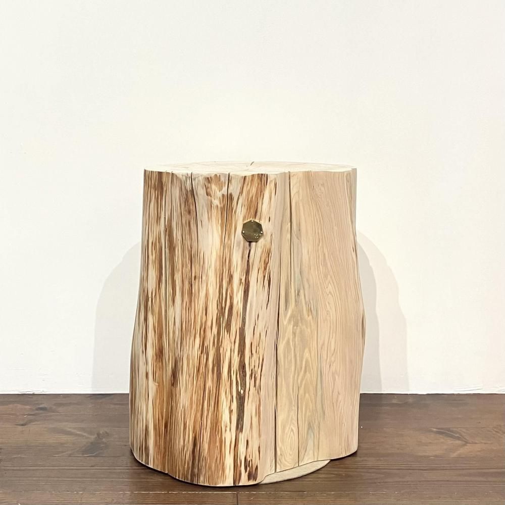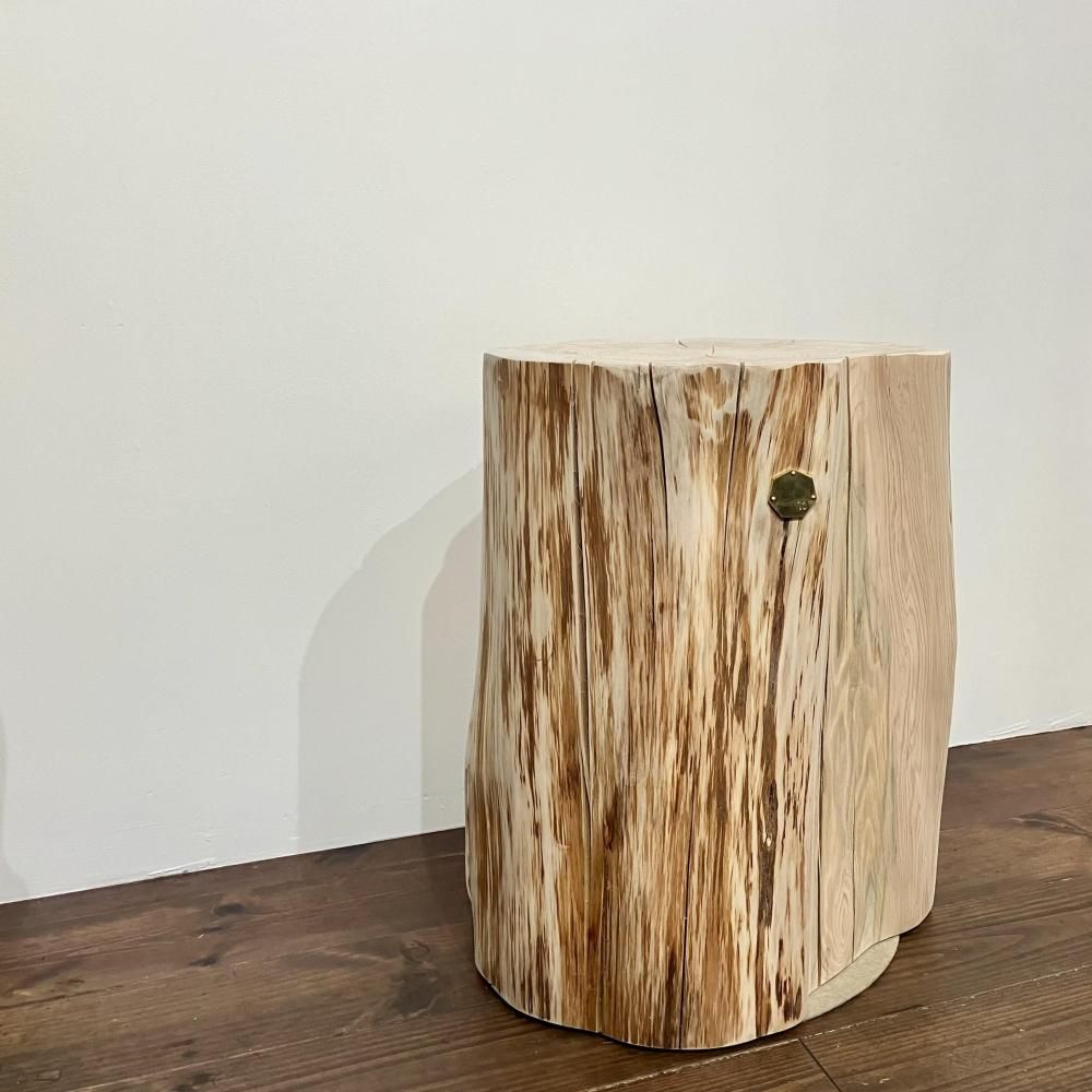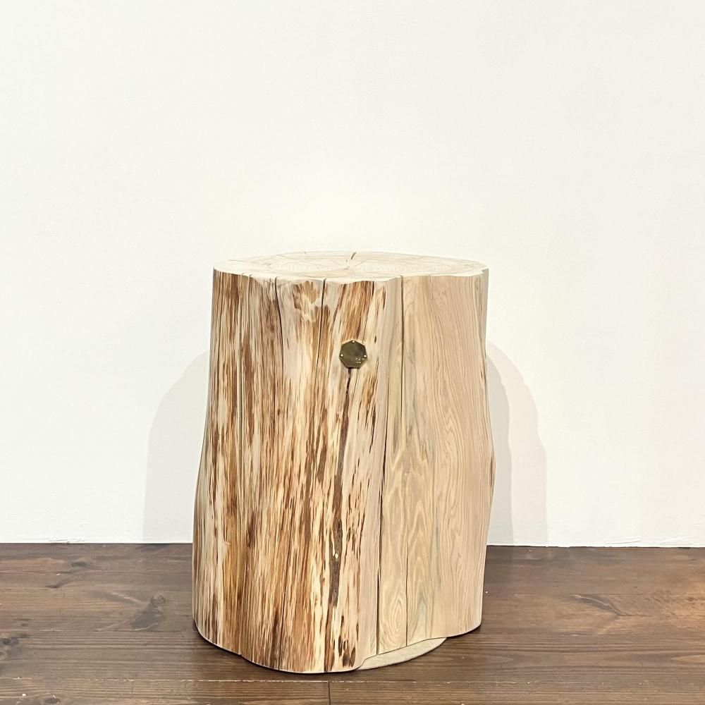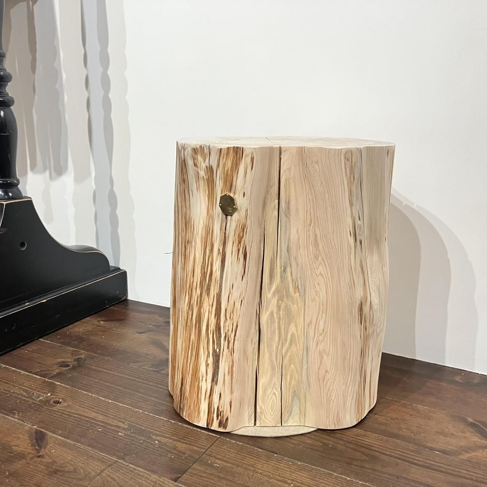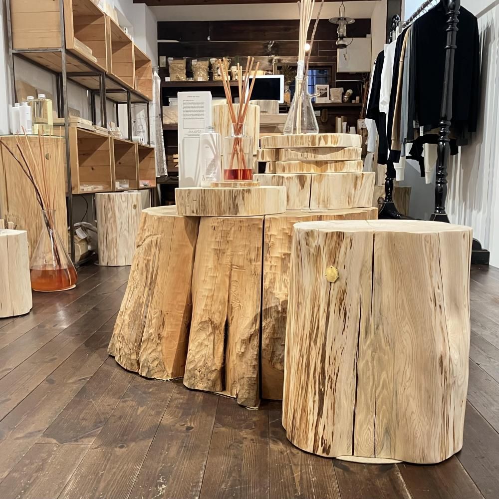 Cul de Sac 中目黒店に丸太スツール_H40cmが入荷しました。厳しい寒さに耐え、成木になるまで樹齢100年以上時間をかけてゆっくりと成長する青森ヒバの丸太を丁寧に磨き上げ、自然の風合いを残すよう製作した丸太スツールです。