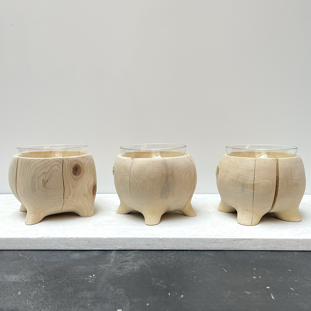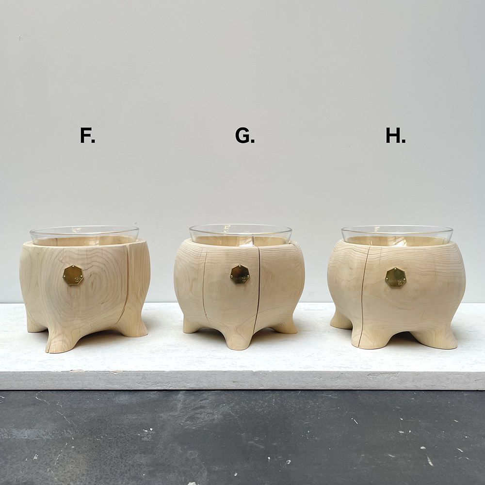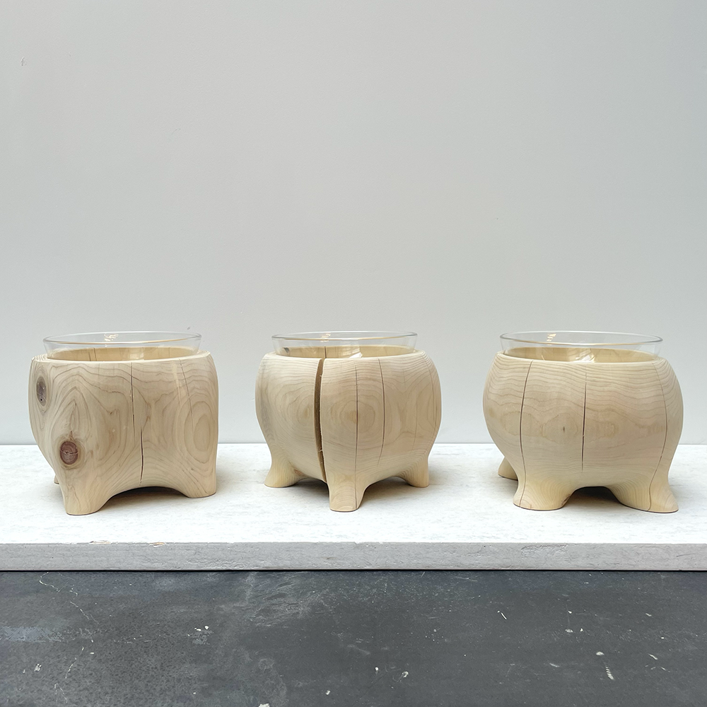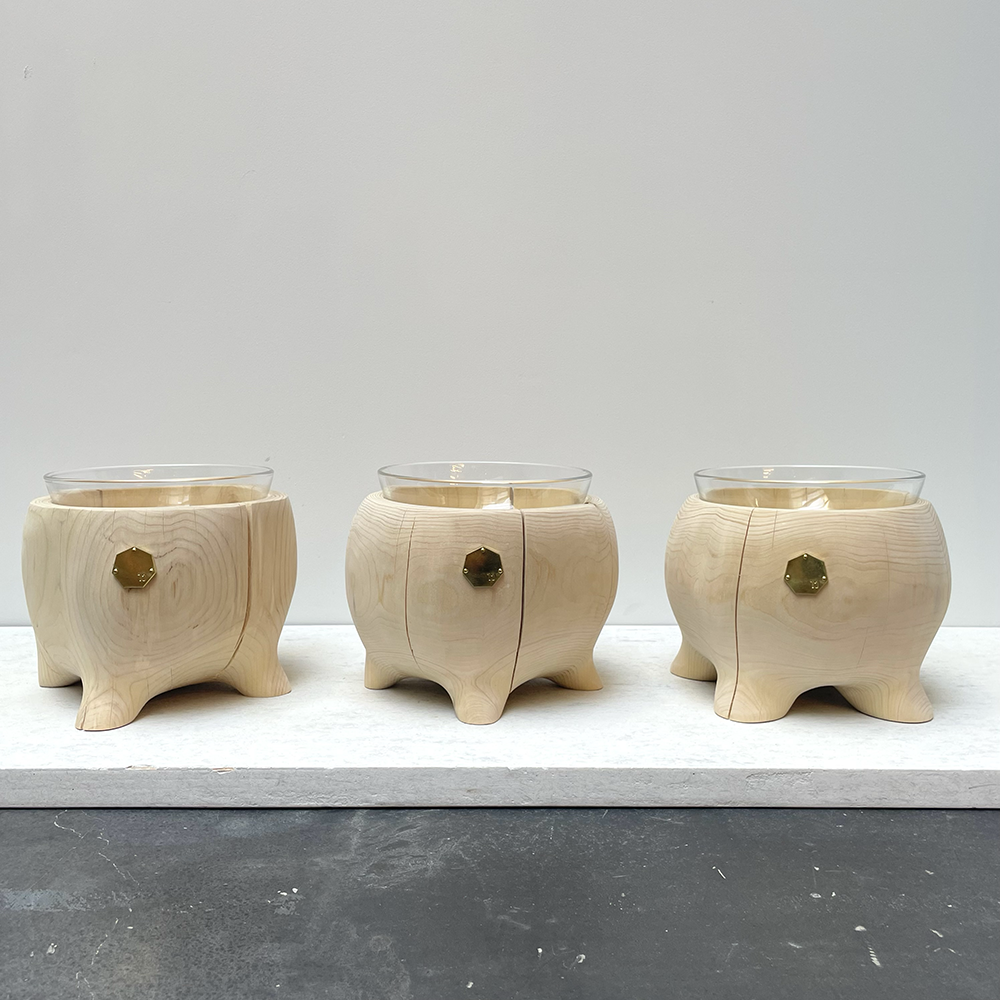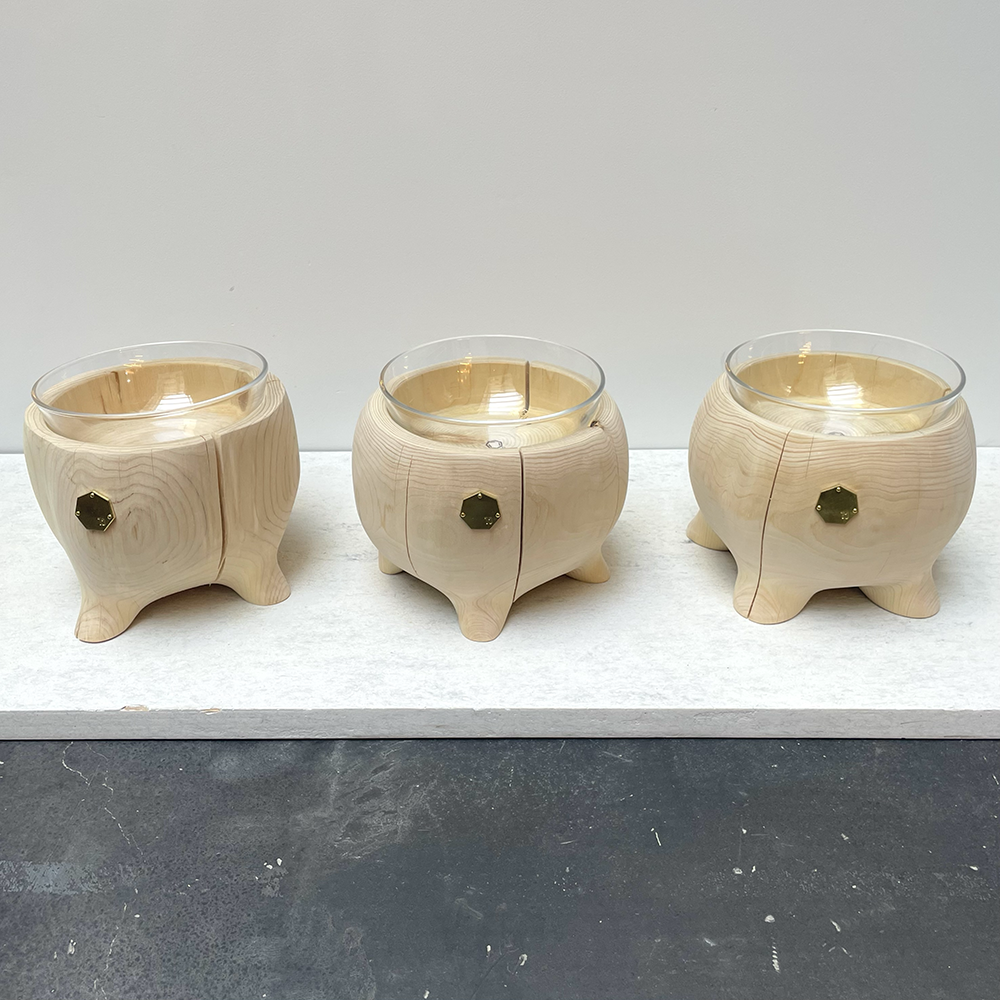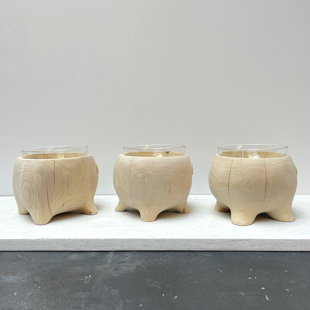 青森ヒバの丸太を削り出し、まるで動き出しそうな足のついたペットテープルです。1点1点デザインを変えて制作したかわいいフォルムの新作となっております。