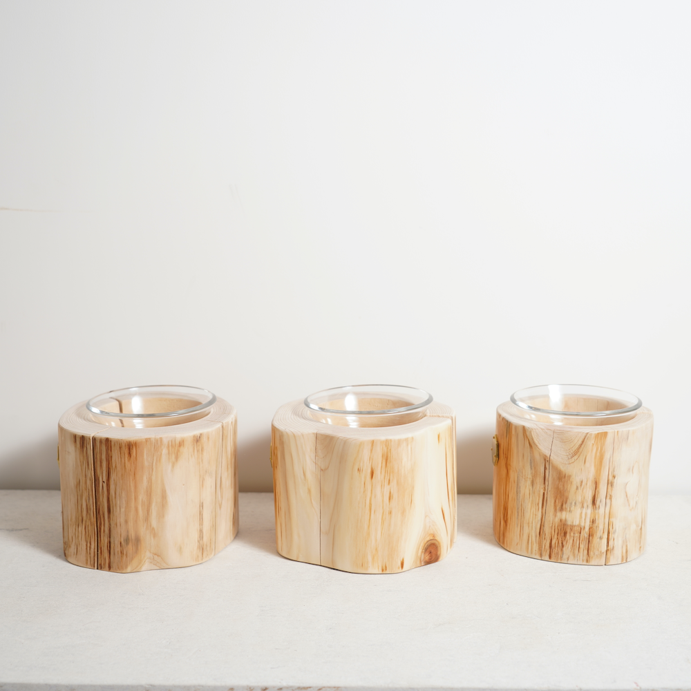 ・ガラスボールが丸太から1cmほど出るデザインです。
