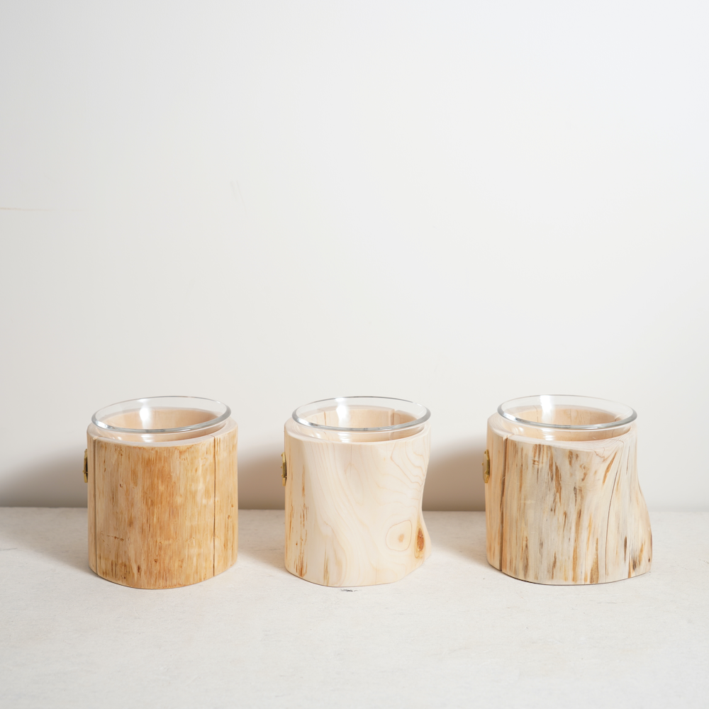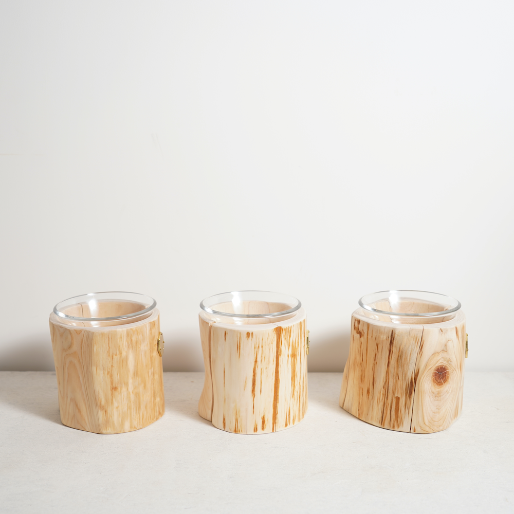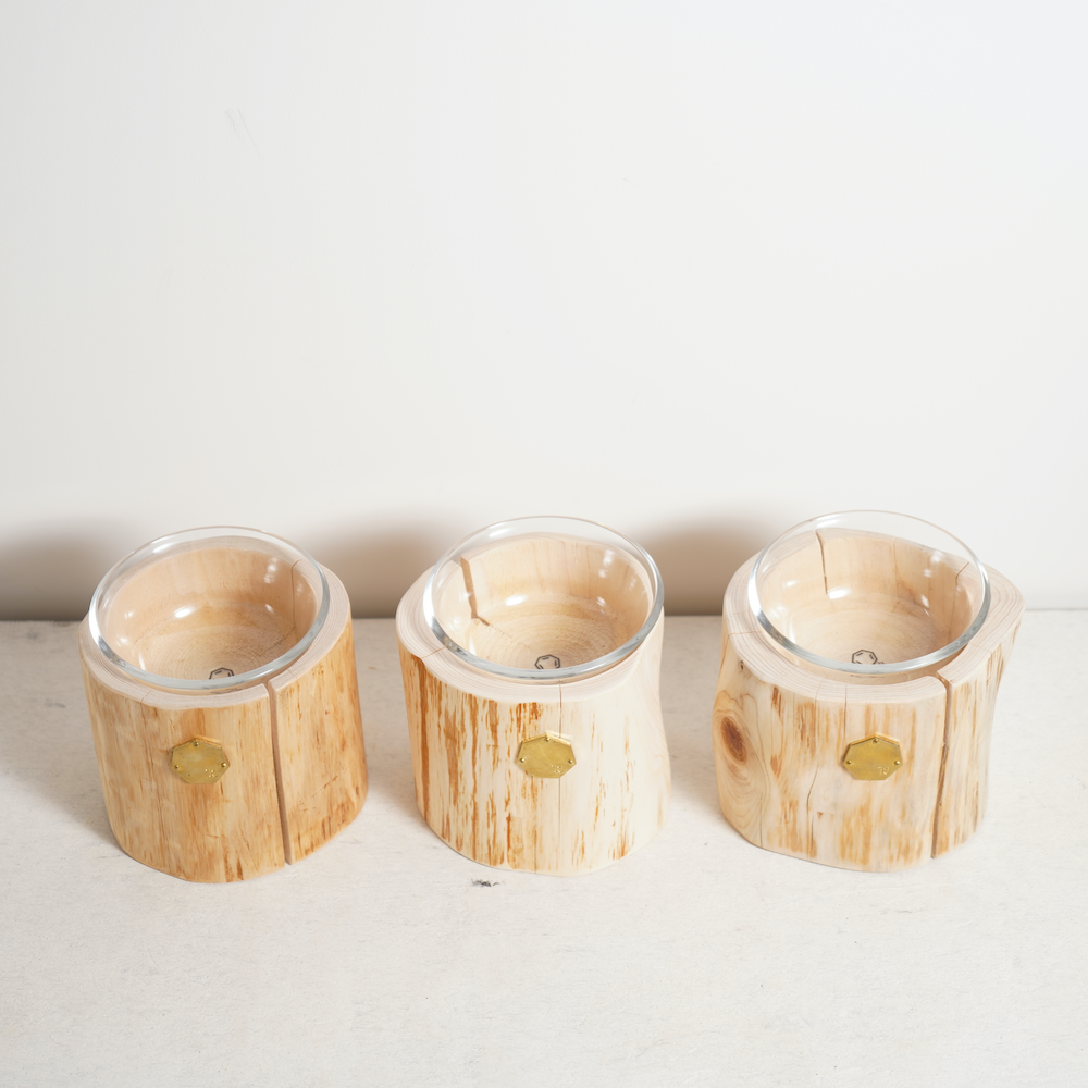 ・ガラスボールが丸太から1cmほど出るデザインです。
