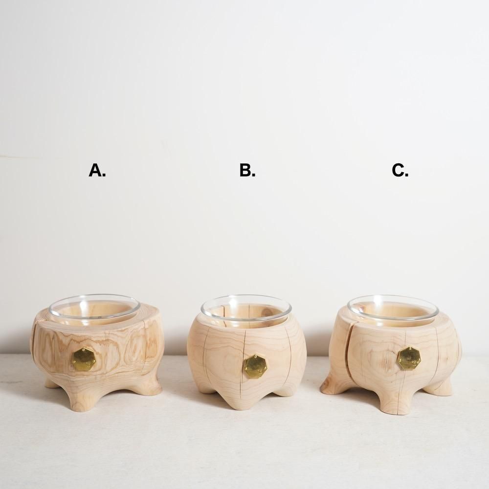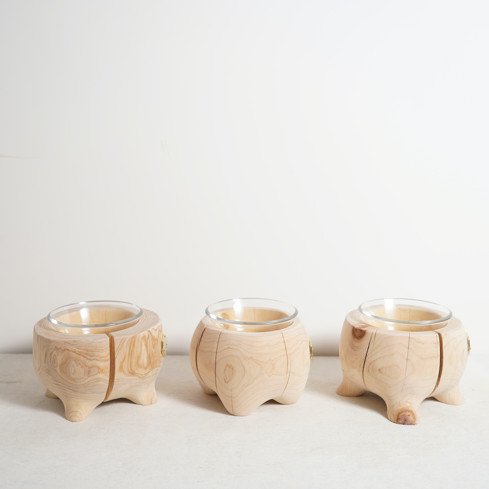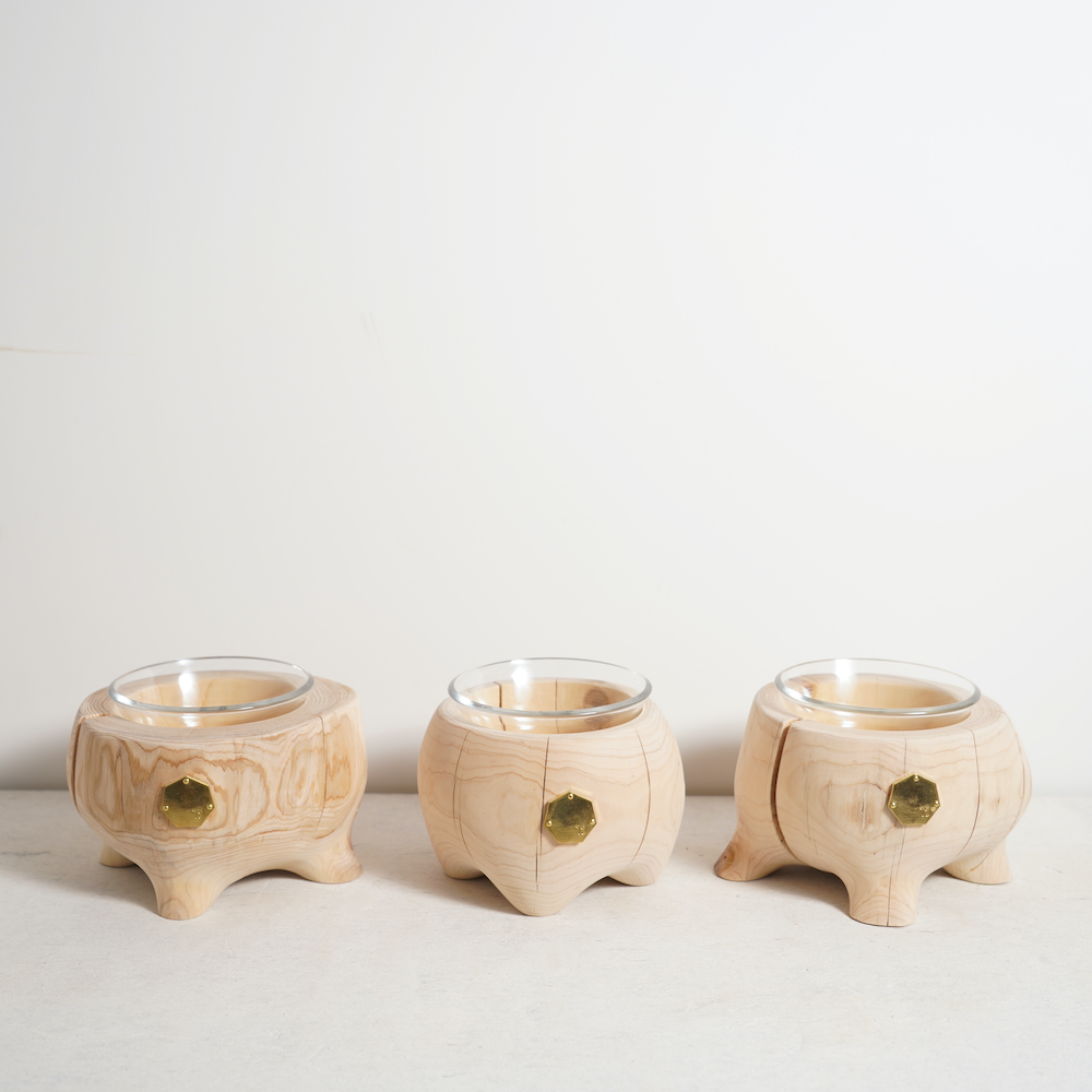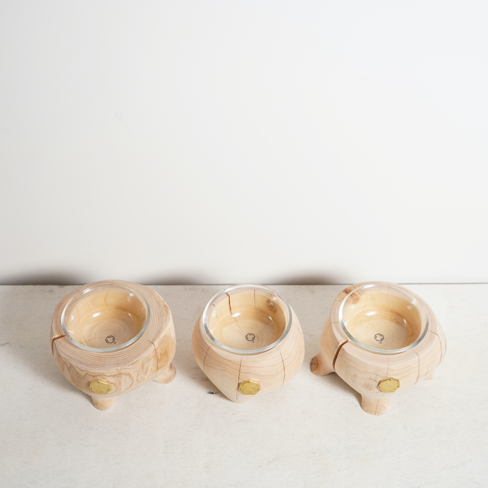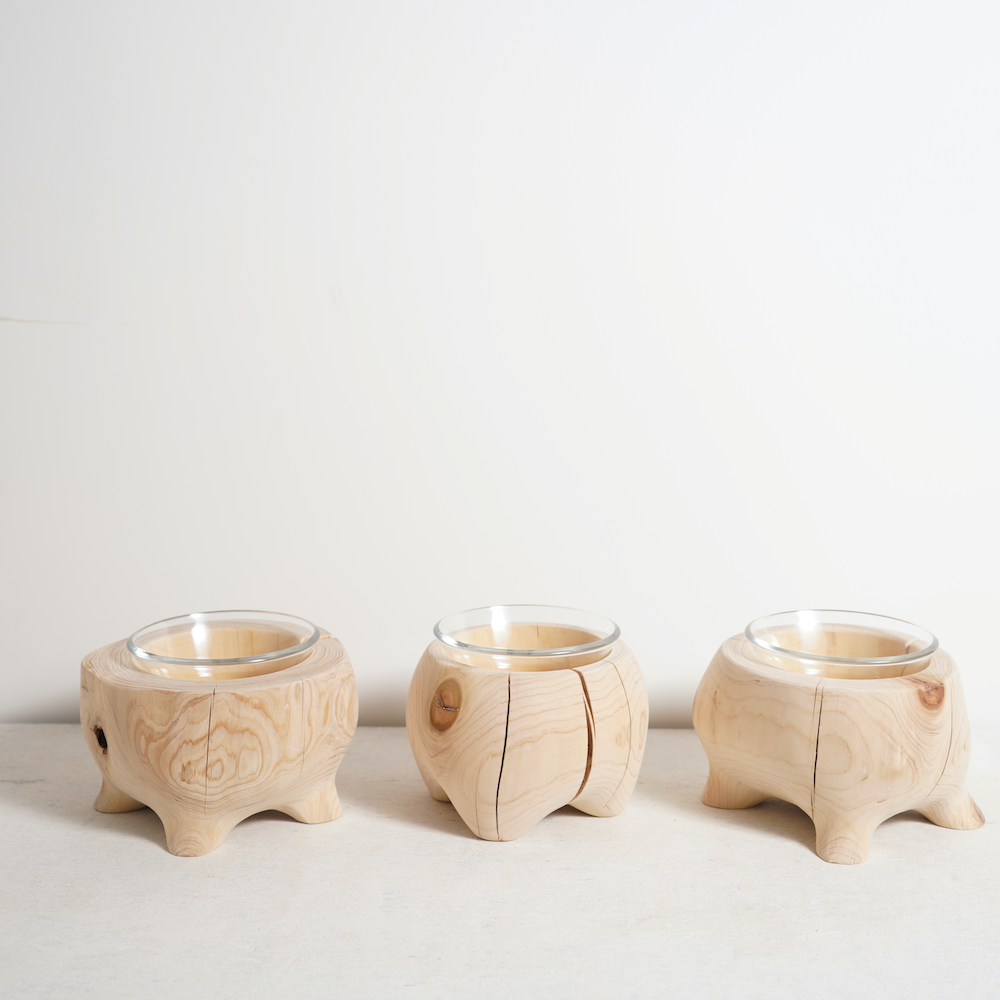 青森ヒバの丸太を削り出し、まるで動き出しそうな足のついたペットテープルです。1点1点デザインを変えて制作したかわいいフォルムになっております。