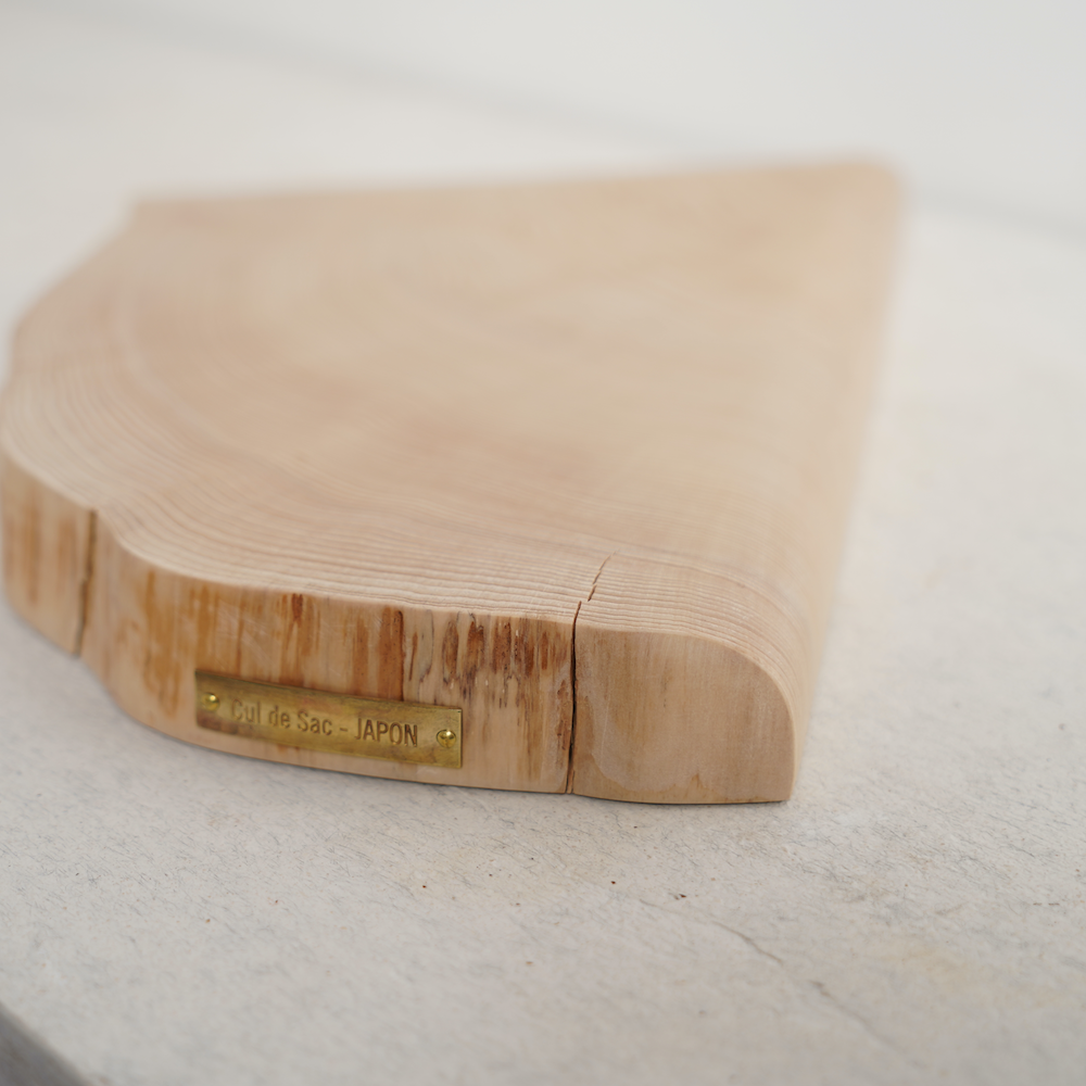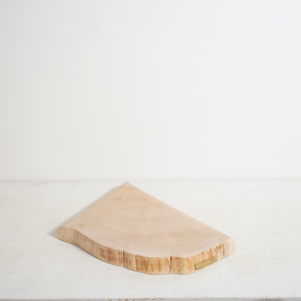 ヒバの輪切りを4等分~5等分に切り分けて作った、まるでチーズの様な形をした輪切りの1ピースです。