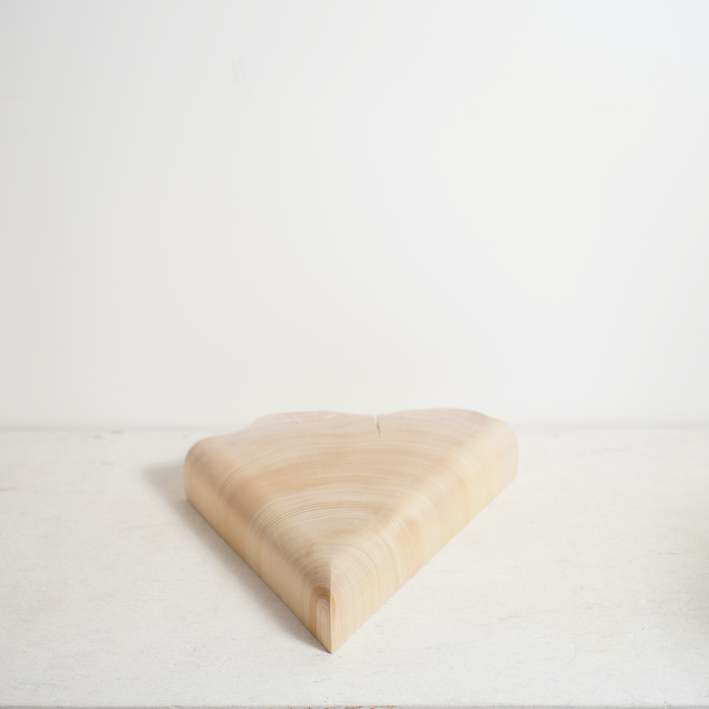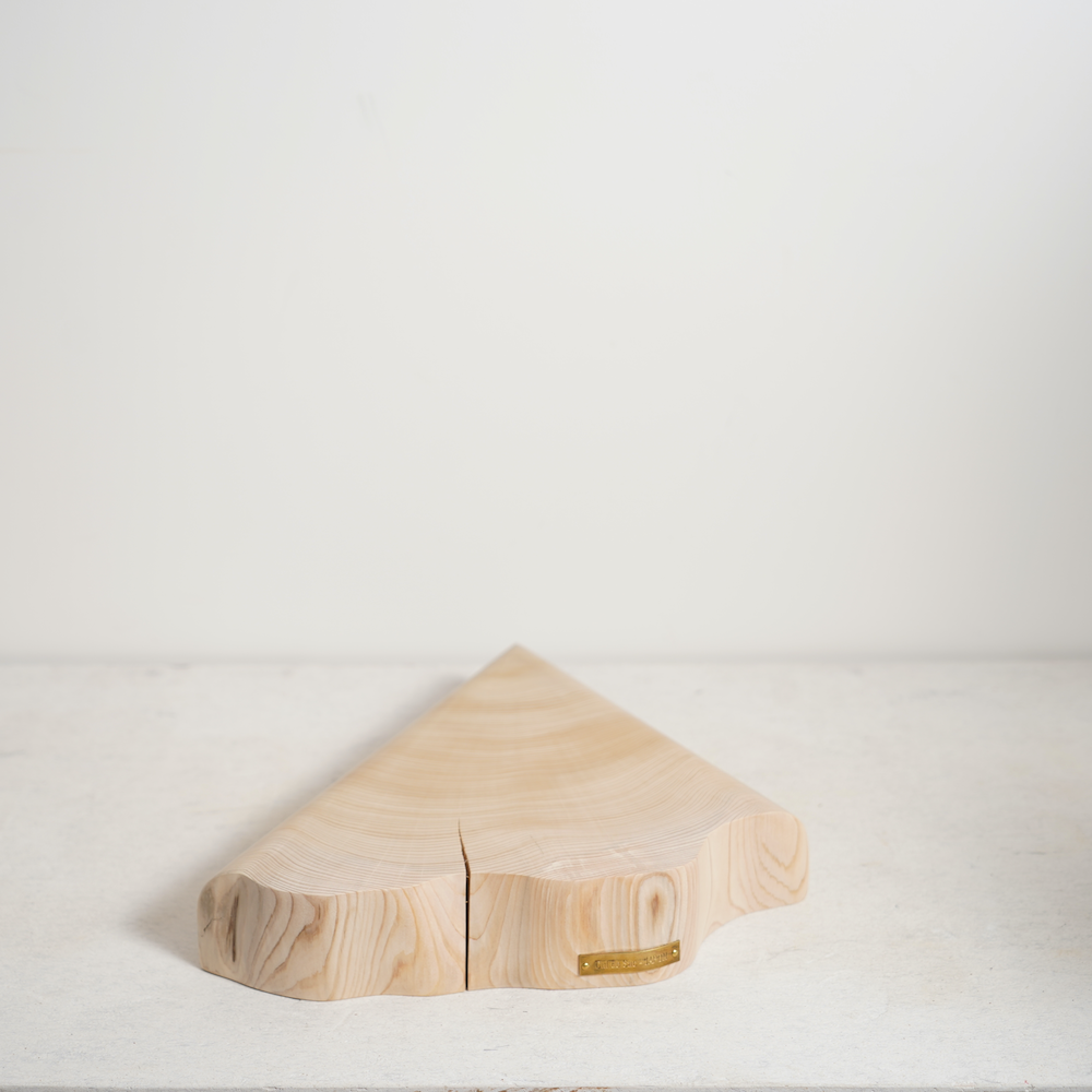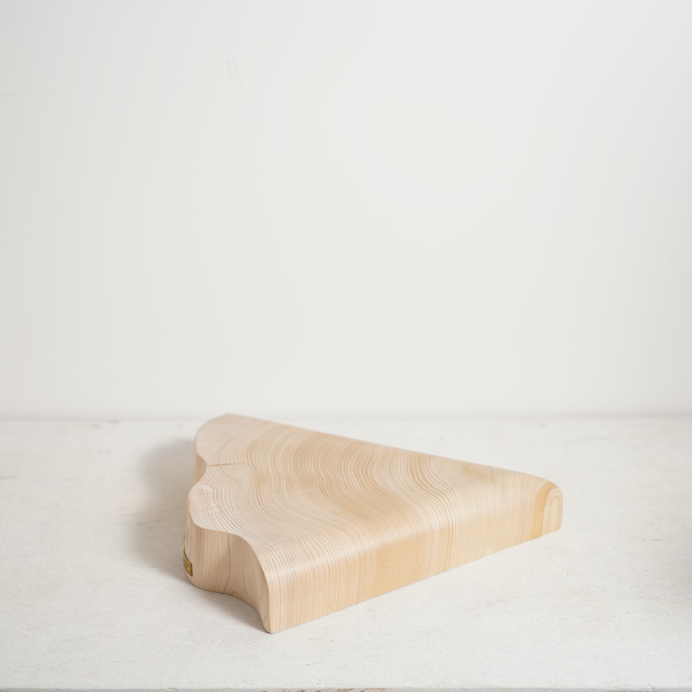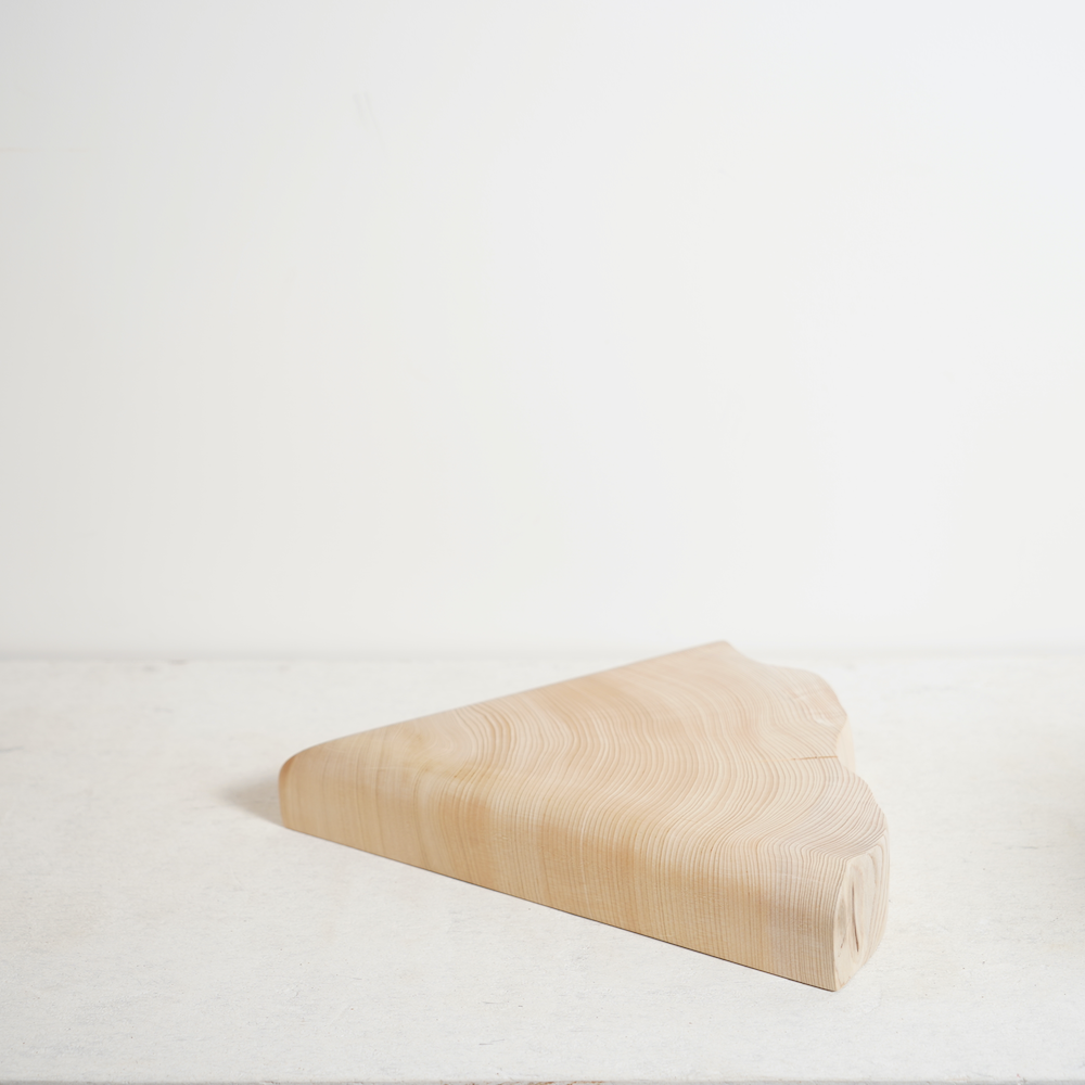 ヒバの輪切りを4等分~5等分に切り分けて作った、まるでチーズの様な形をした輪切りの1ピースです。