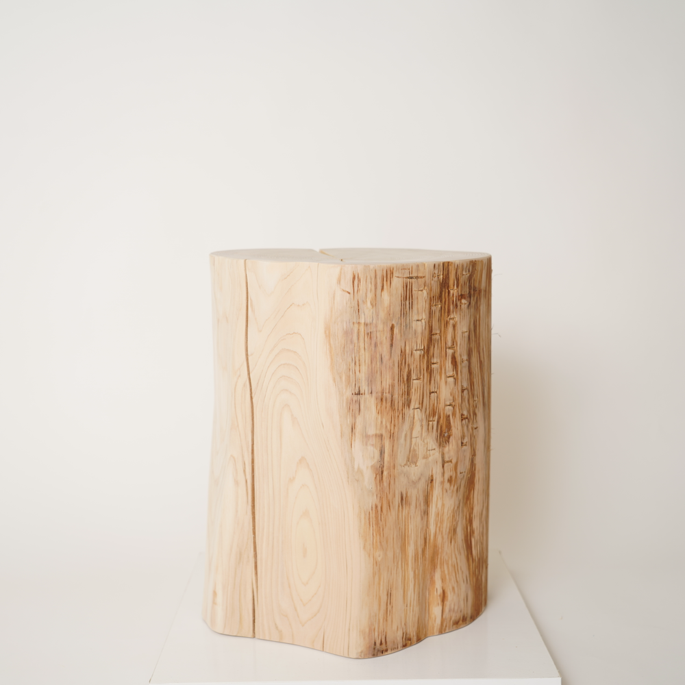 大自然を感じ、青森ヒバの香りを楽しめる丸太のスツールです。