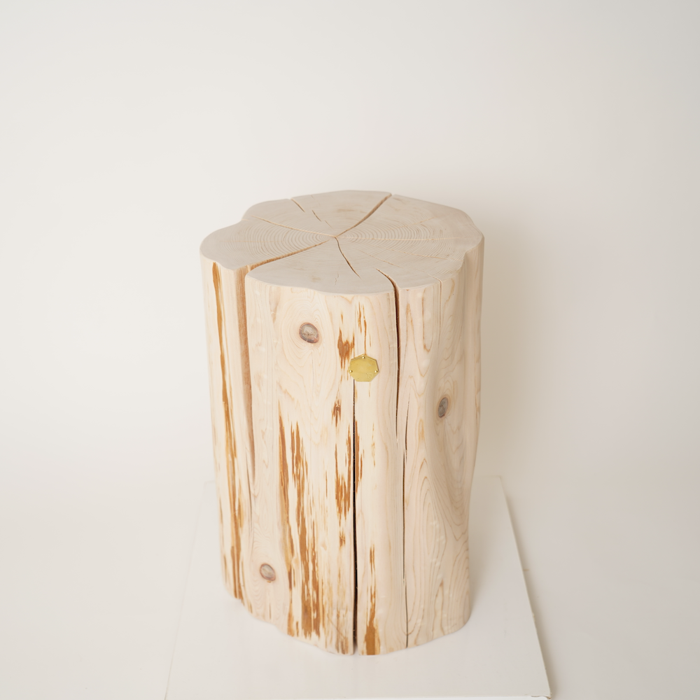 大自然を感じ、青森ヒバの香りを楽しめる丸太のスツールです。