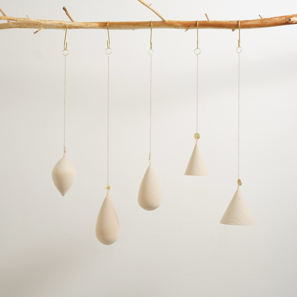 旋盤で美しいシルエットに仕上げた、ヒバの木目が際立つ ウッドオーナメントです。
