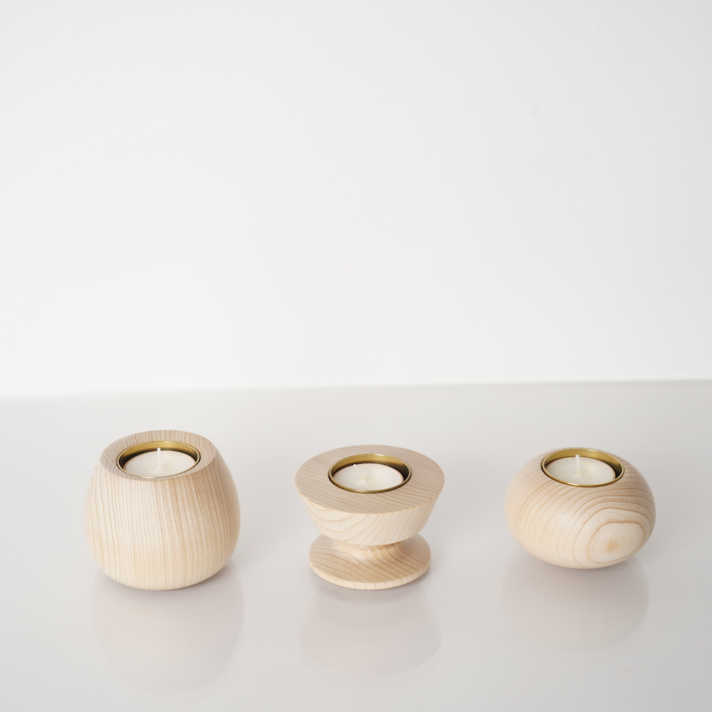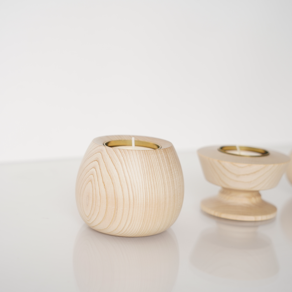 青森ヒバ精油の香りのキャンドルに火を灯すと、青森ヒバを焚いたような、暖かで優しい香りと柔らかな灯が広がります。