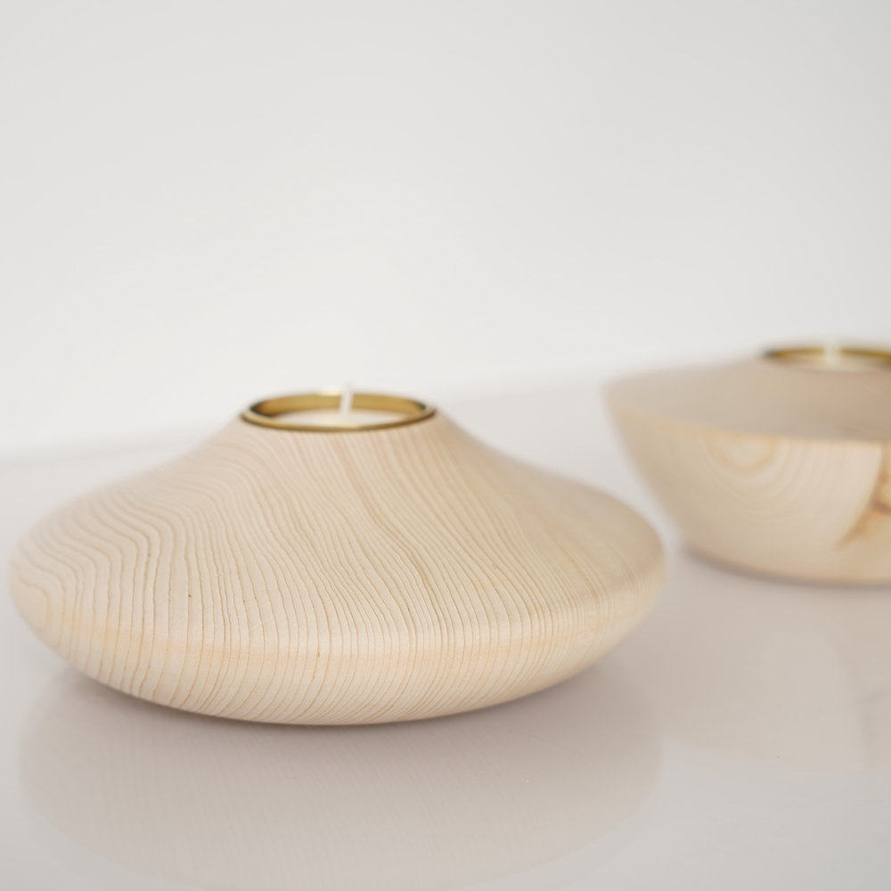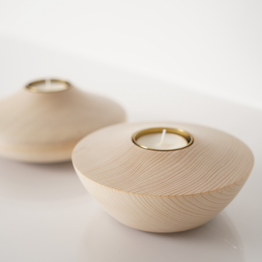 青森ヒバ精油の香りのキャンドルに火を灯すと、青森ヒバを焚いたような、暖かで優しい香りと柔らかな灯が広がります。