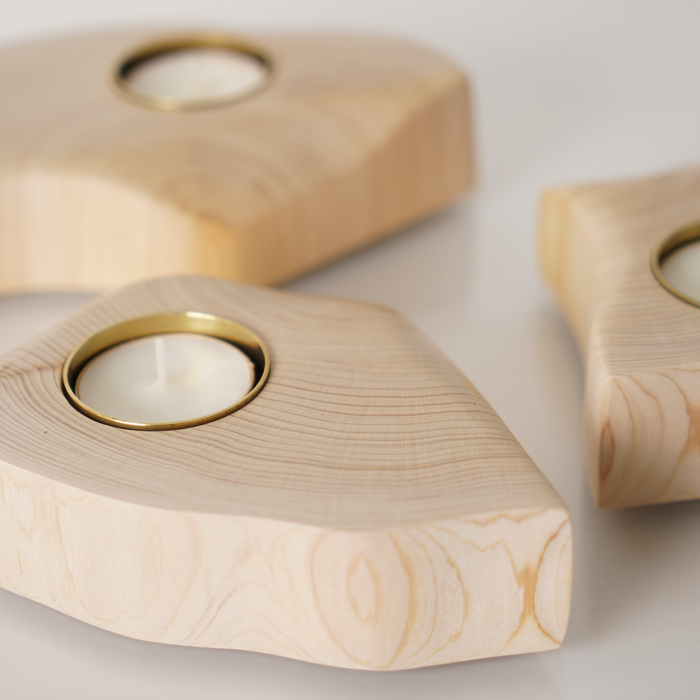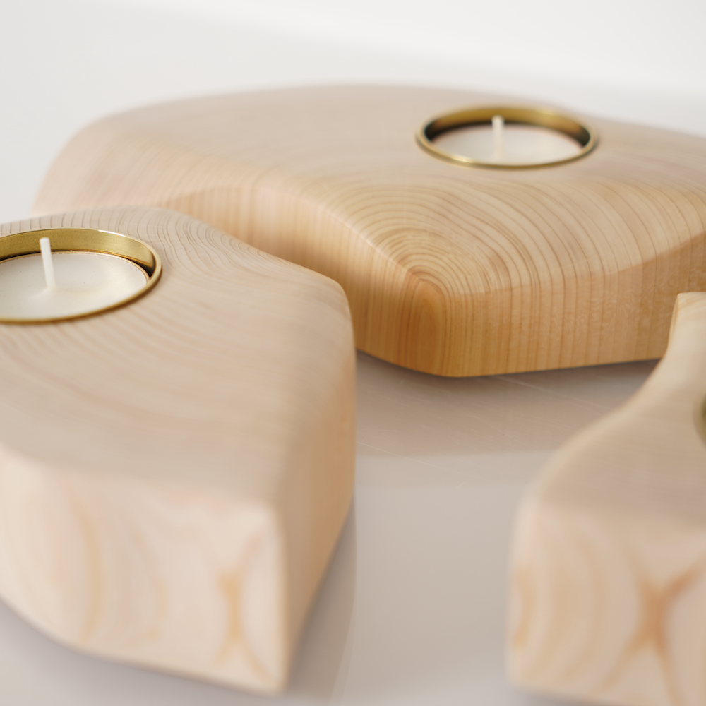 ヒバの輪切りを3等分に切り分けて作った、まるでチーズの様な形をしたキャンドルホルダーです。