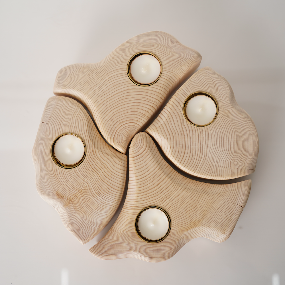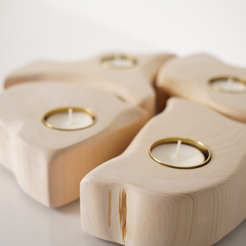 ヒバの輪切りを4等分に切り分けて作った、まるでチーズの様な形をしたキャンドルホルダーです。